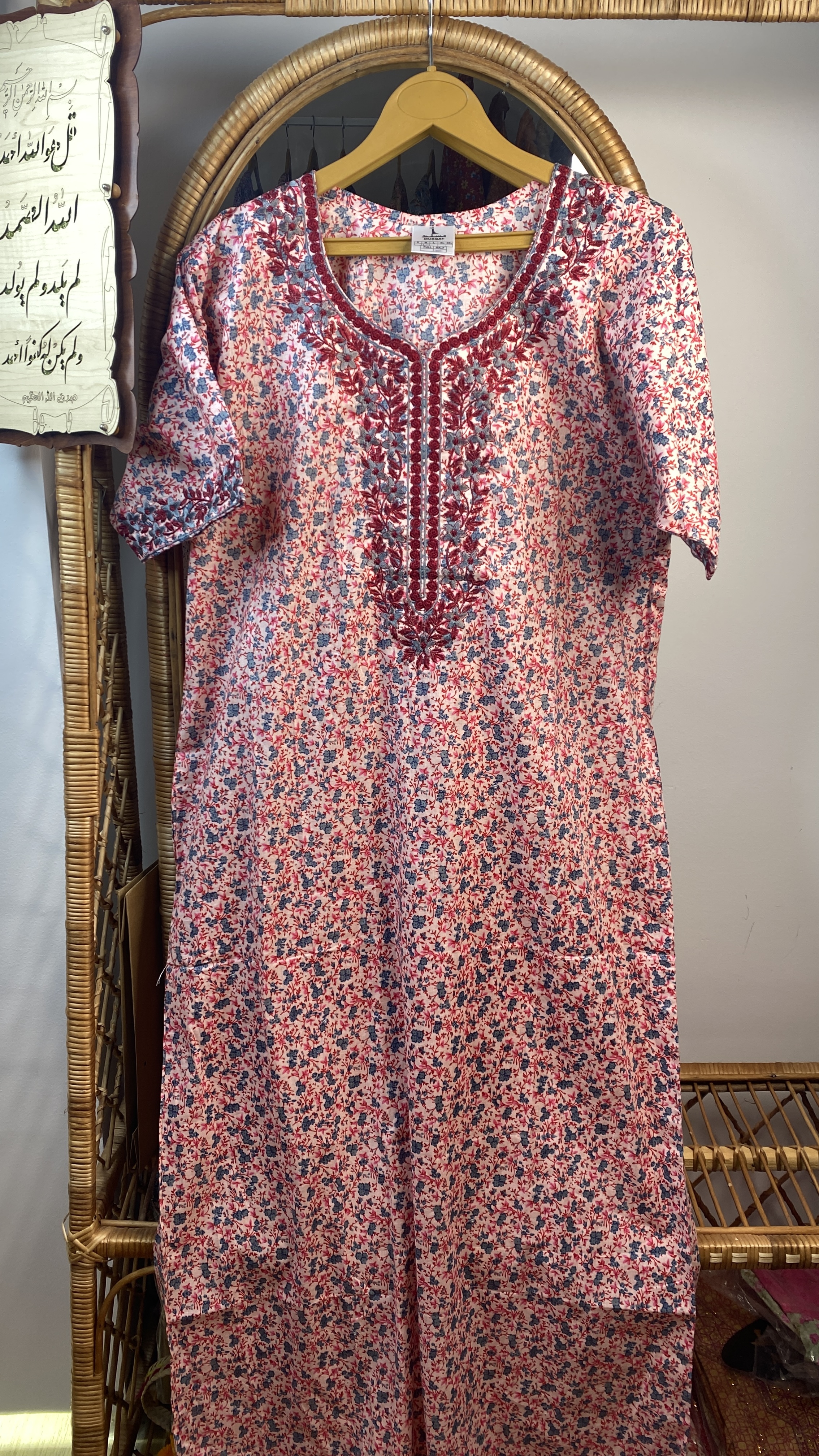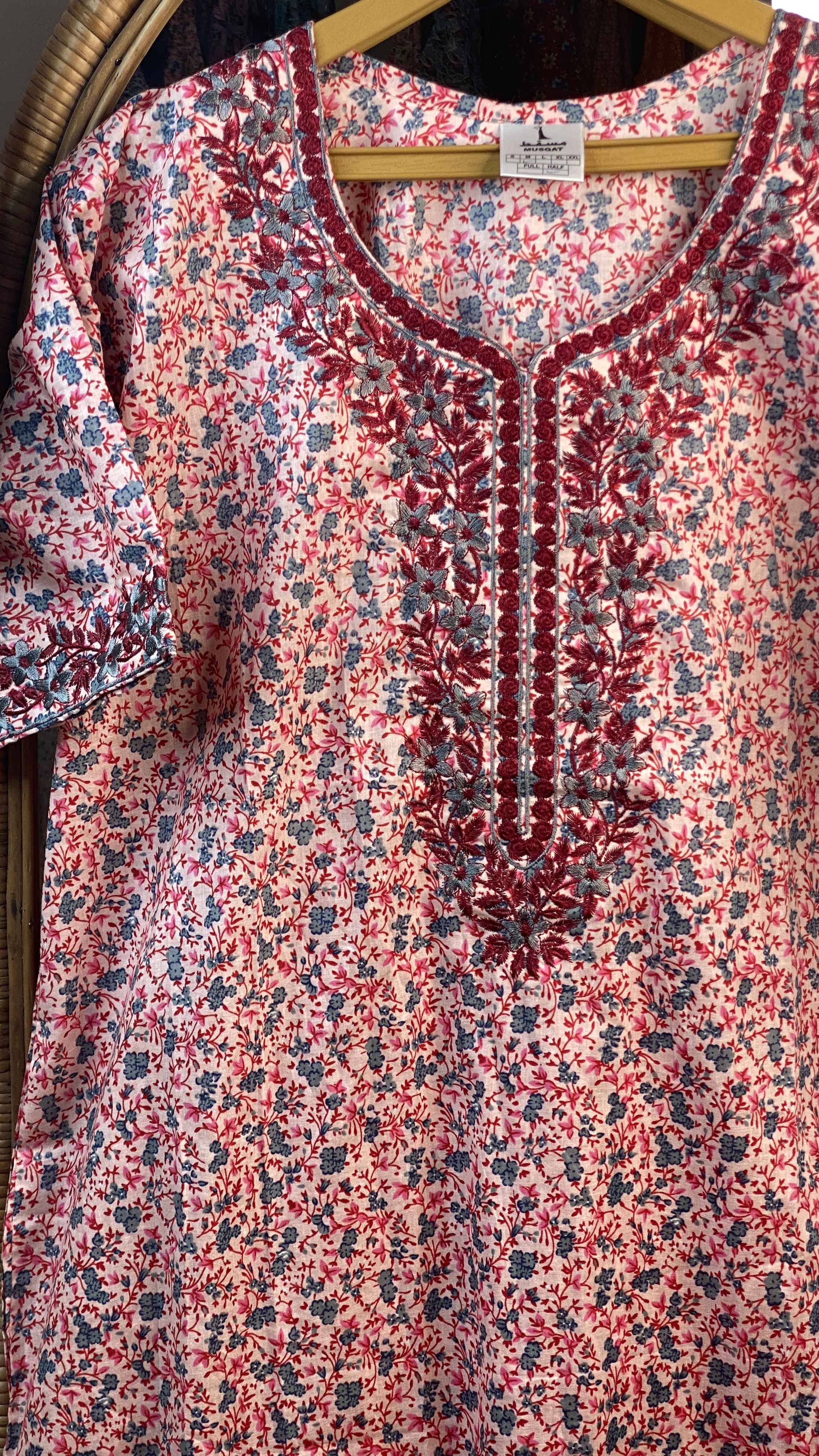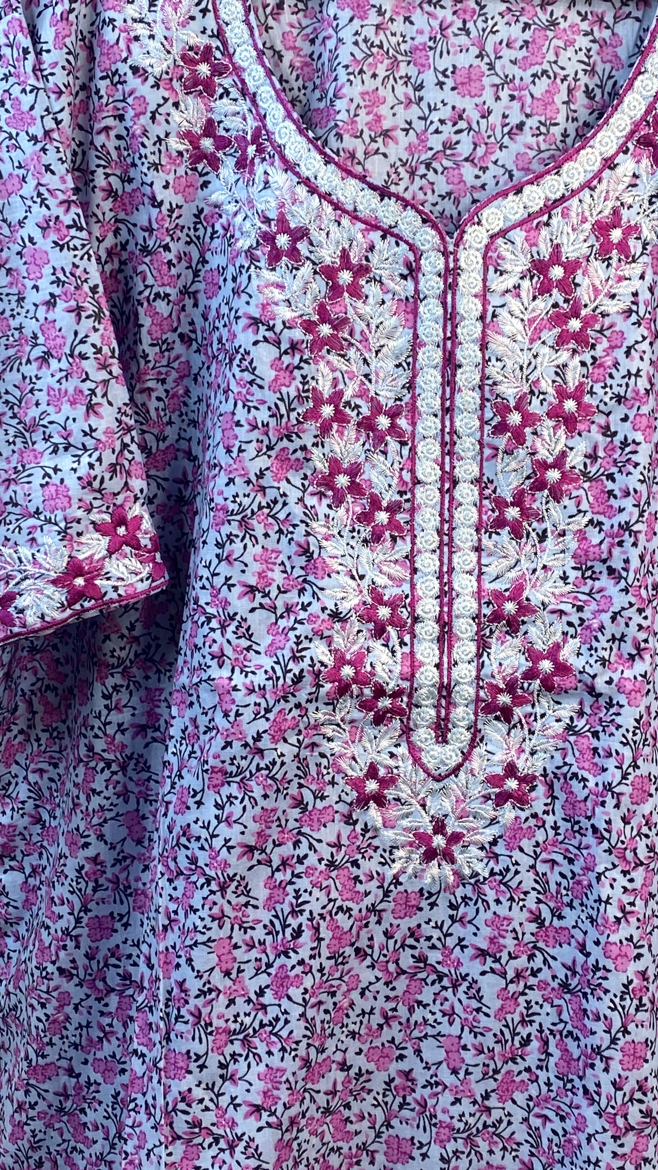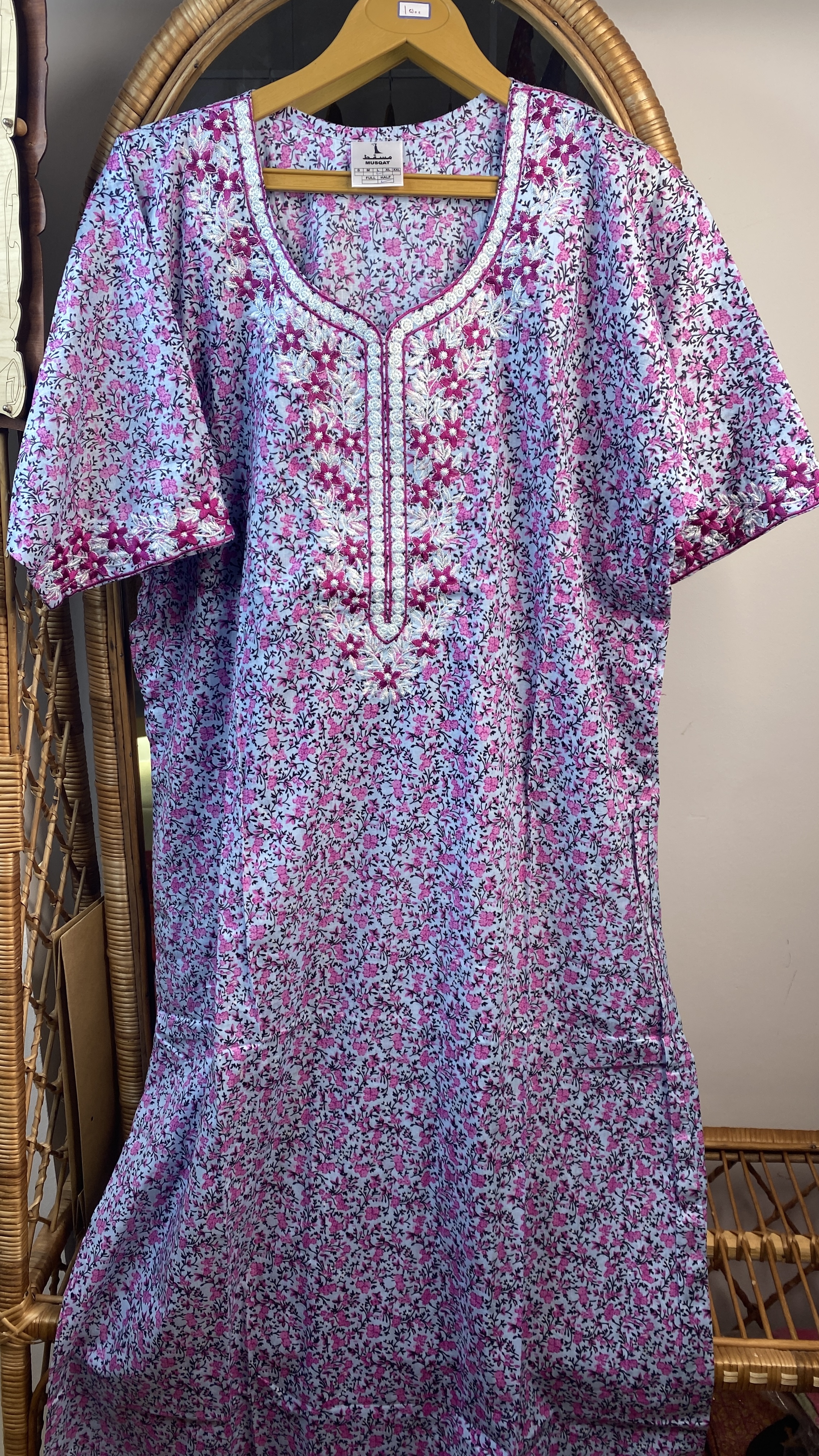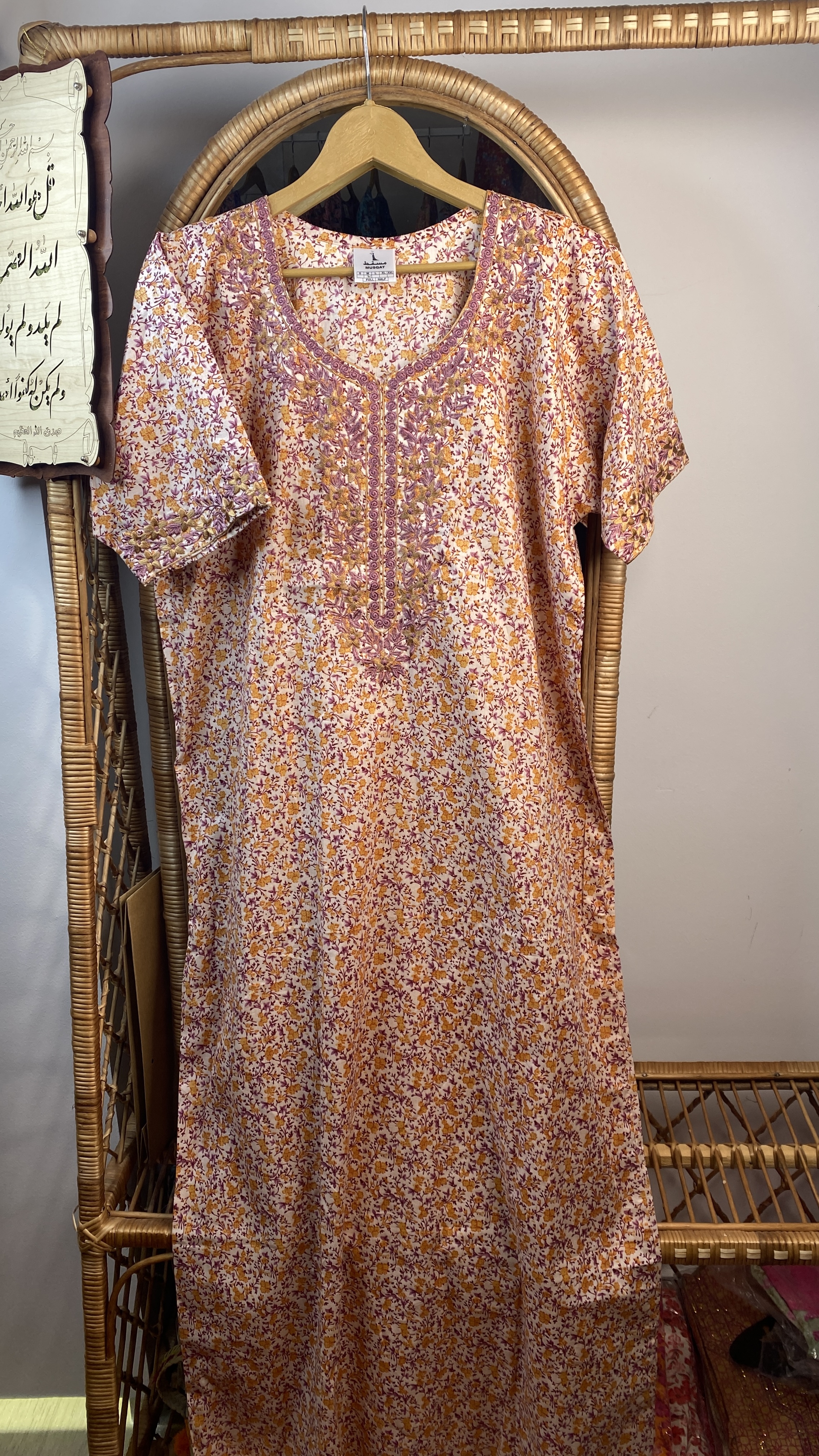لباس بندری اماراتی جنس پارچه کتان نخ هندی گل ریز جلو گلدوزی وارداتیشده جیب داربرند مسقط