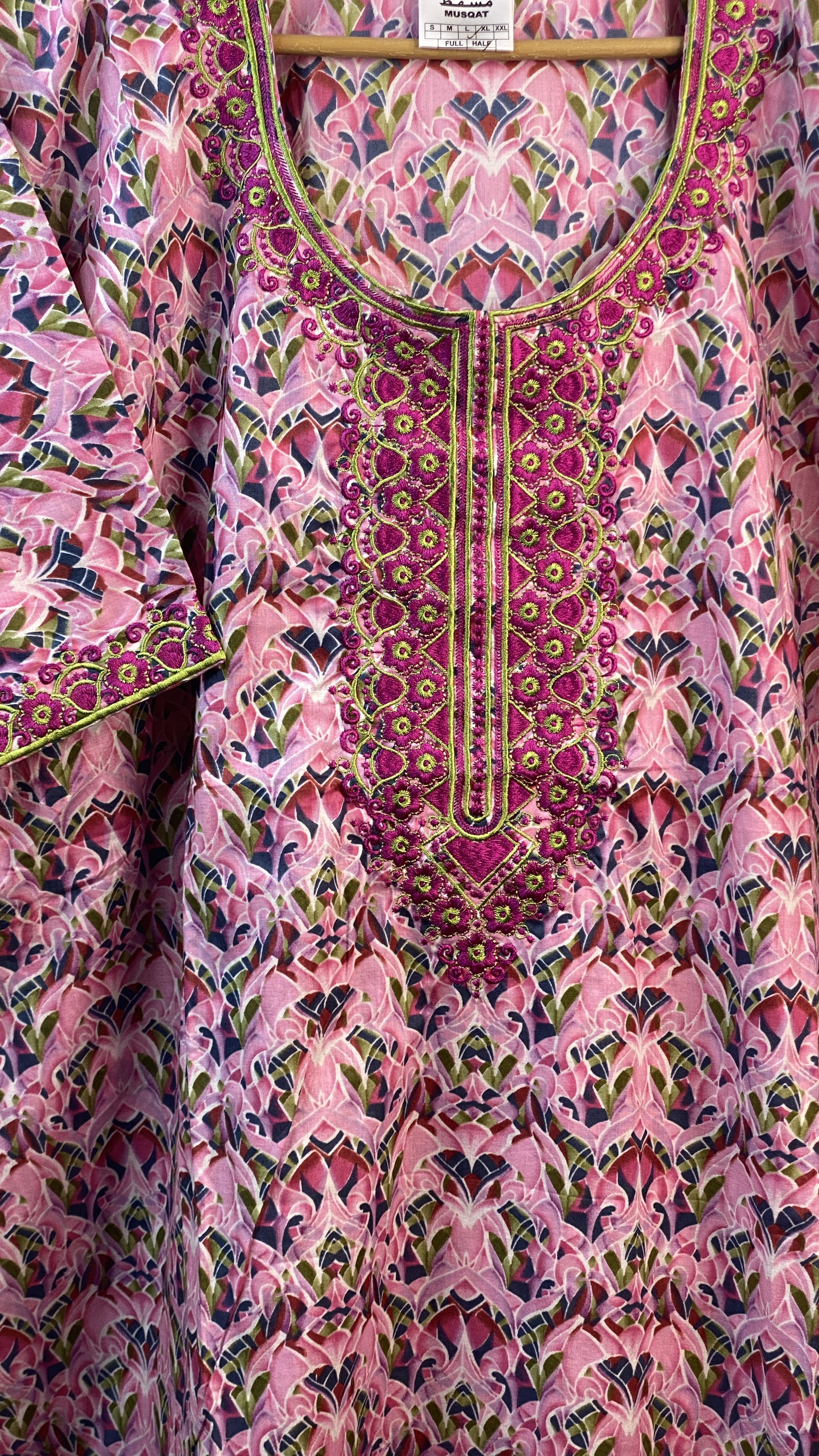 لباس بندری ،کتان نخ هندی جلو گولدوزی شده جیب دار