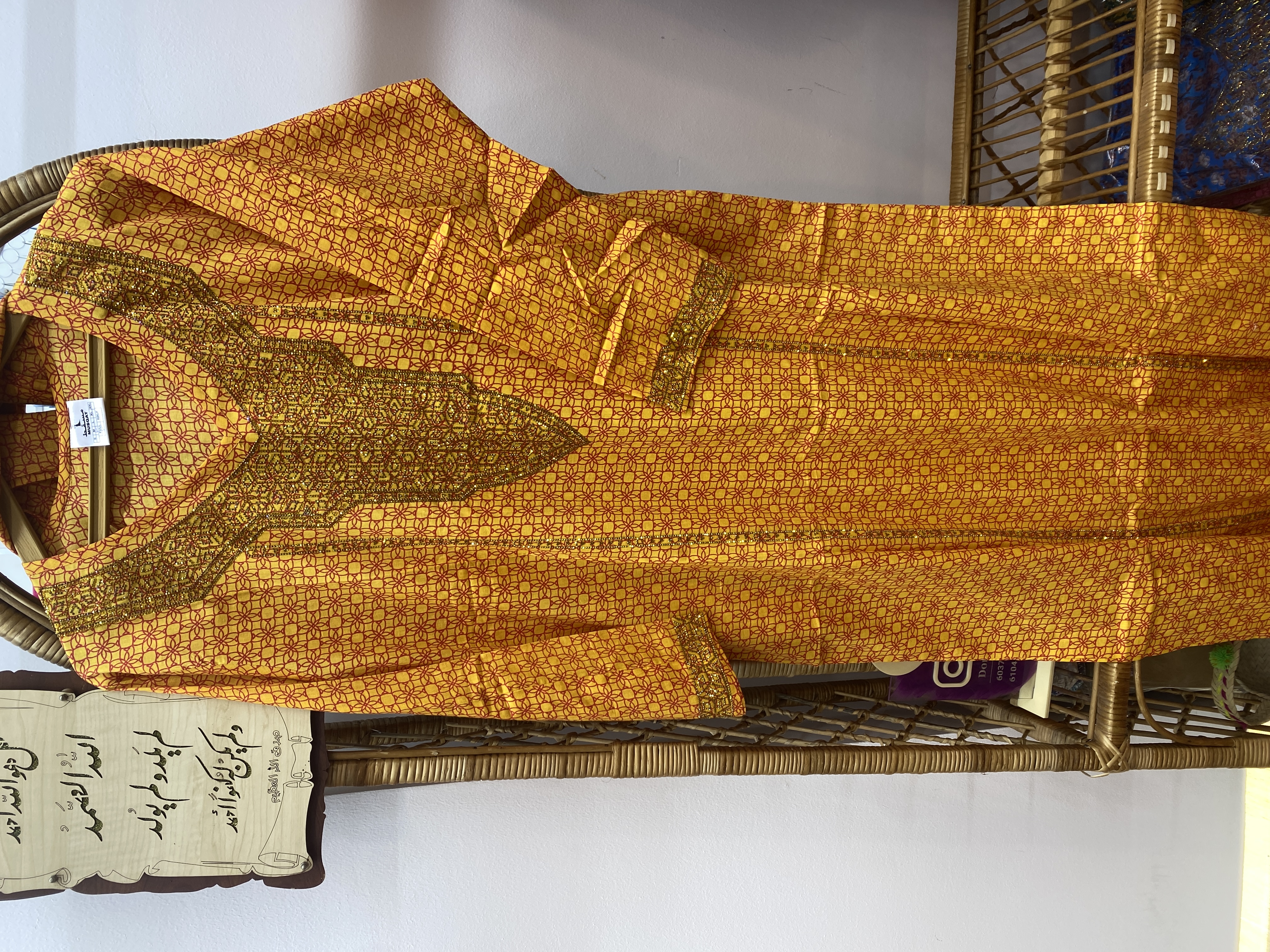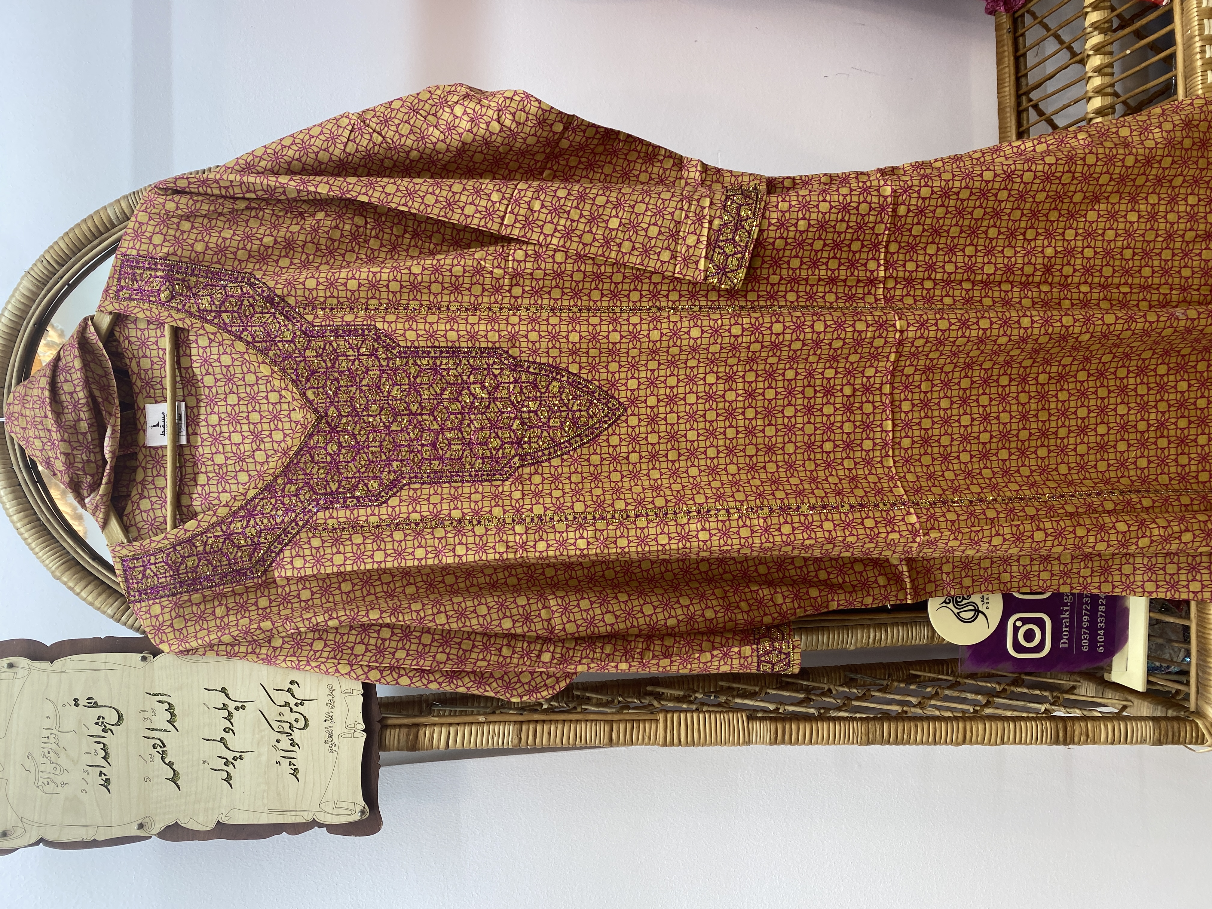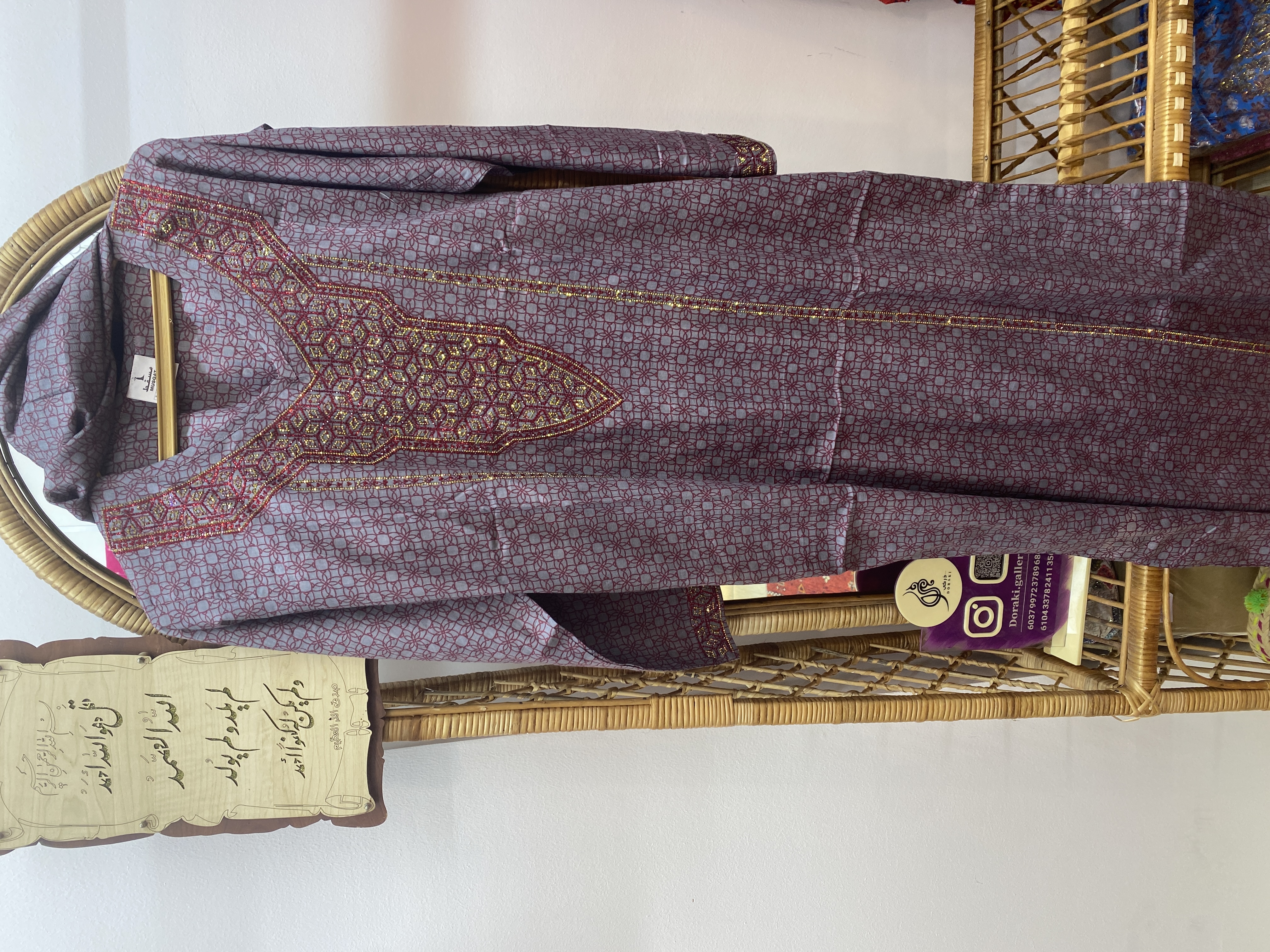 جنس کتان نخ هندی برند مسقط همراه با شال جیب دار نگین پرس شده ریزش نداره حتی با لباسشویی